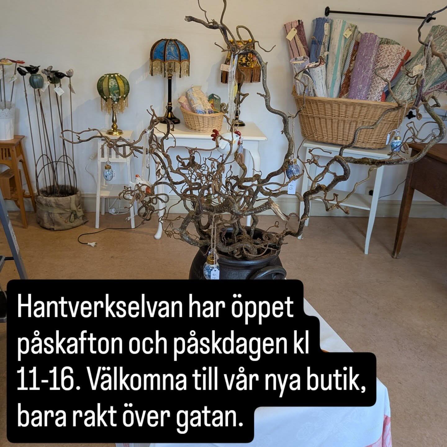 Café, Kinnekulle Antique, Hantverksbutik Ettan, Elvan samt receptionsbutiken har alla öppet Påskafton och Påskdagen. Café 10-18, butiker 11-16.